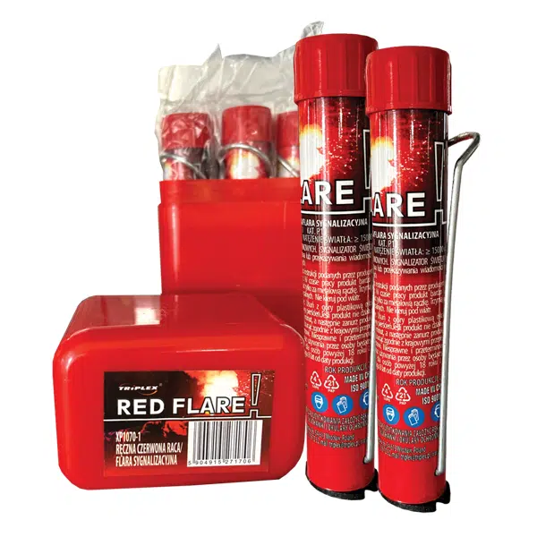 Bezpieczny metalowy uchwyt, odpalane przy pomocy zawleczki, zapakowane w bezpieczne pudełko.