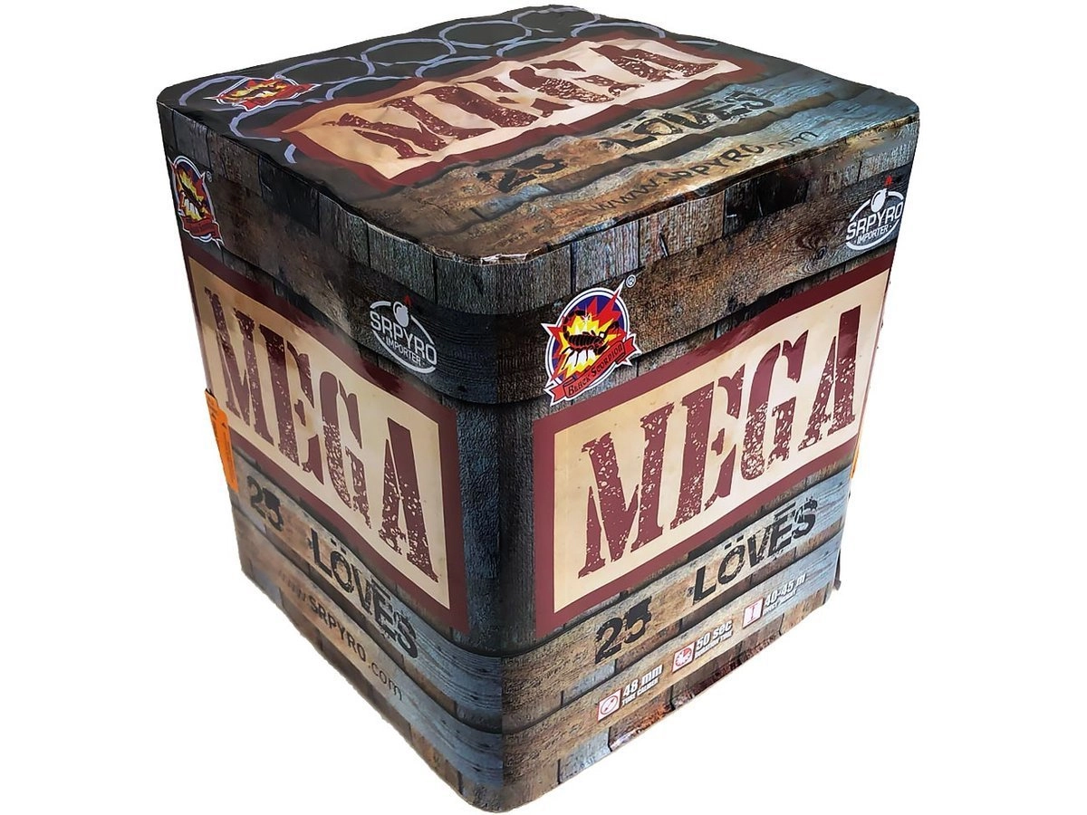 Potężna, niezwykle widowiska wyrzutnia MEGA z 25 strzałami o największym dostępnym kalibrze 48mm.